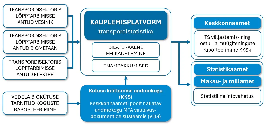 Transpordistatistika kauplemisplatvormi nõue on kehtestatud VKS § 26 lg 2. Transpordistatistikaga kauplemise nõuet enampakkumise teel reguleerib majandus- ja taristuministri 14.11.2022. aasta määrus nr 90 „Biokütuse, biometaani ja elektrienergia statistikaga ning kasvuhoonegaaside heitkoguste statistikaga kauplemise kord“, mille kohta saab lugeda SIIT.